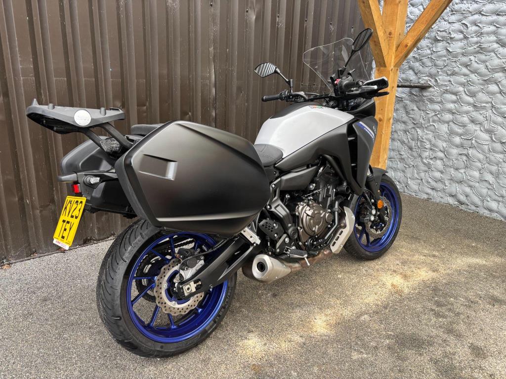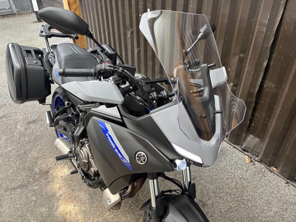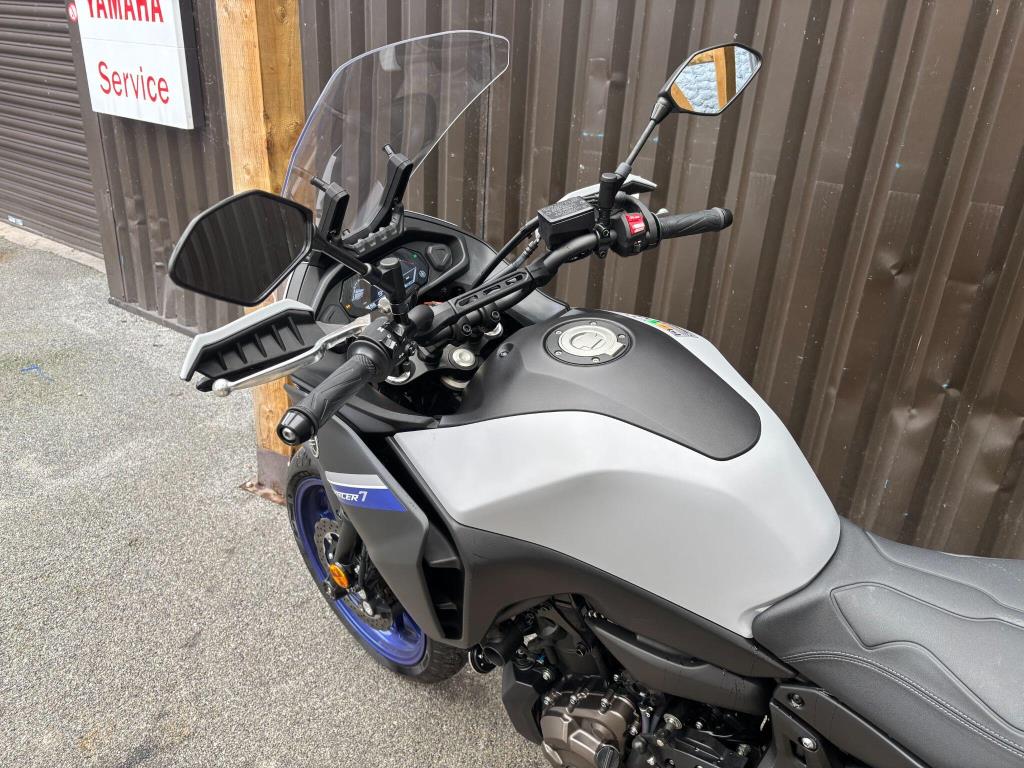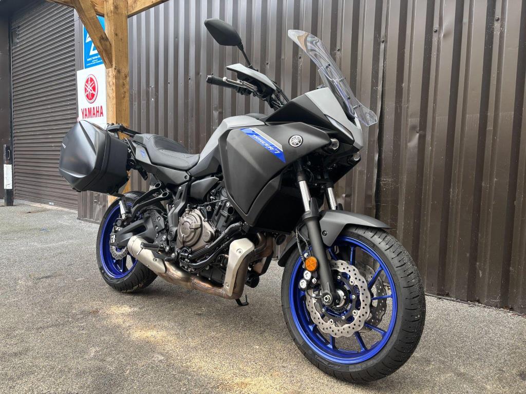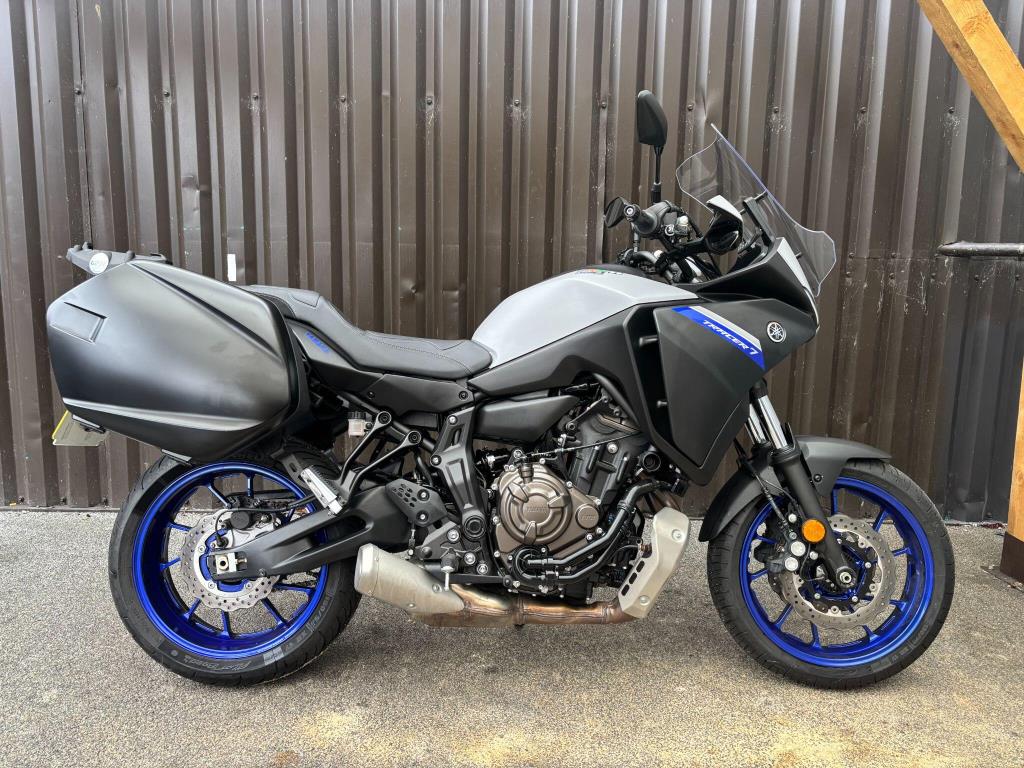The Yamaha Tracer 7 GT is a versatile, lightweight sport-tourer featuring a 690cc CP2 engine, designed for both commuting and long-distance travel. It comes equipped with 20-litre hard side cases, a higher/wider touring screen, and a specialized comfort seat. The 2022 model is known for its strong, linear torque, upright riding position, and manoeuvrability.