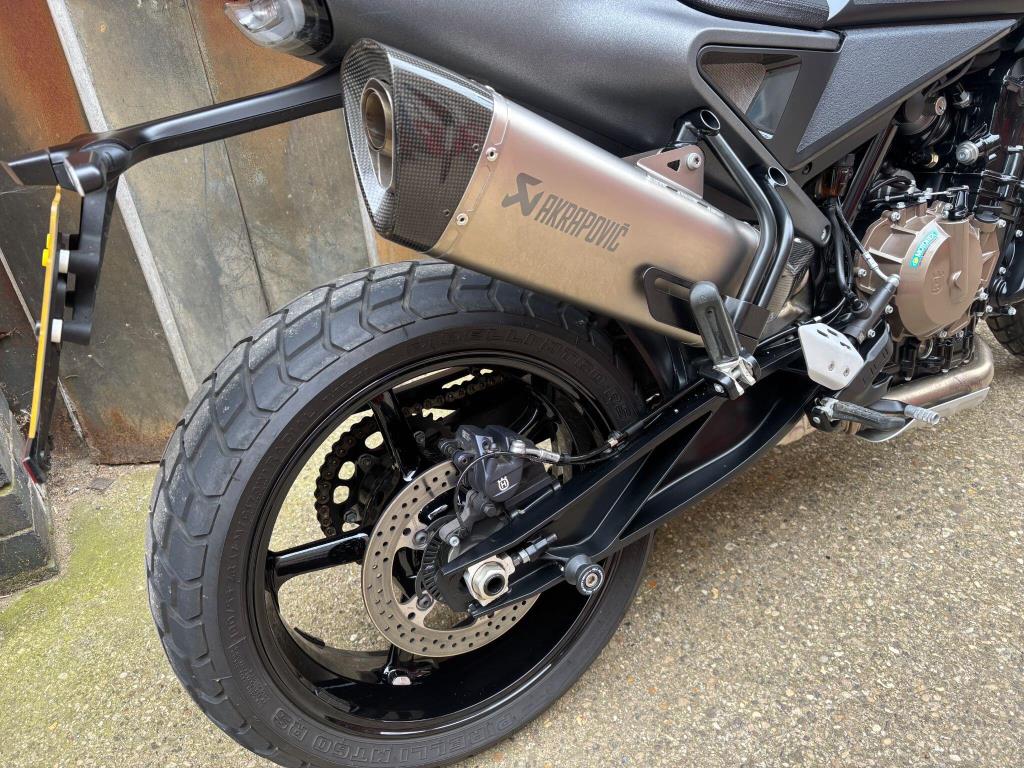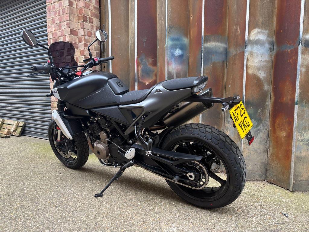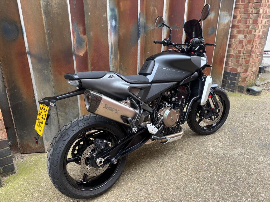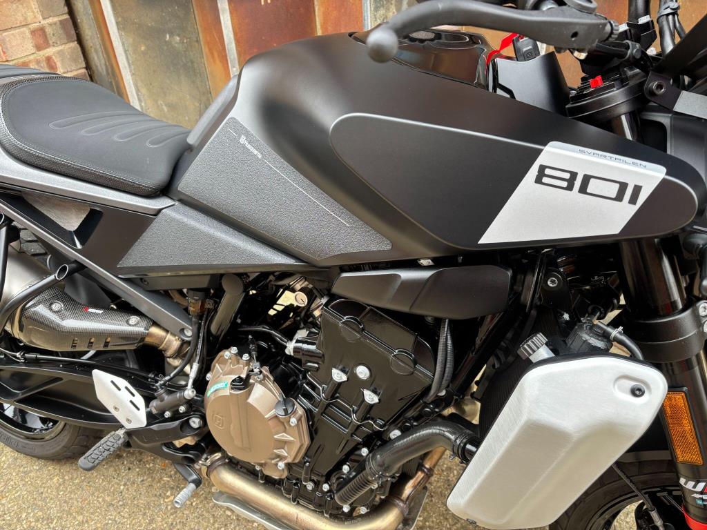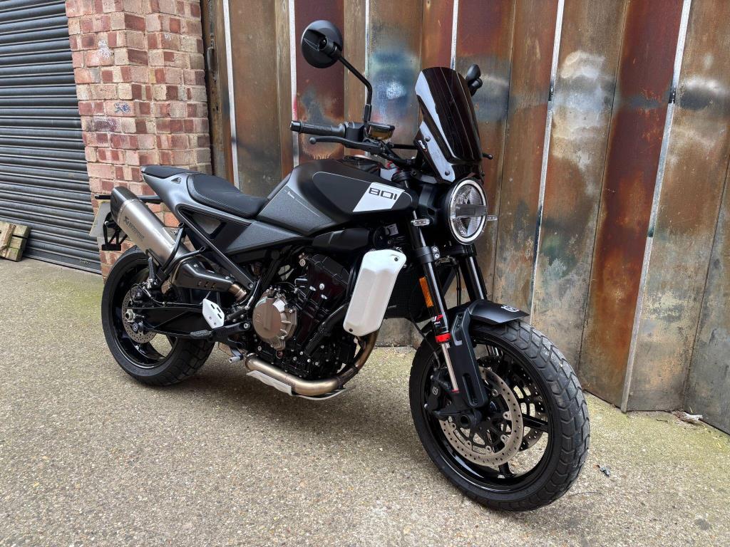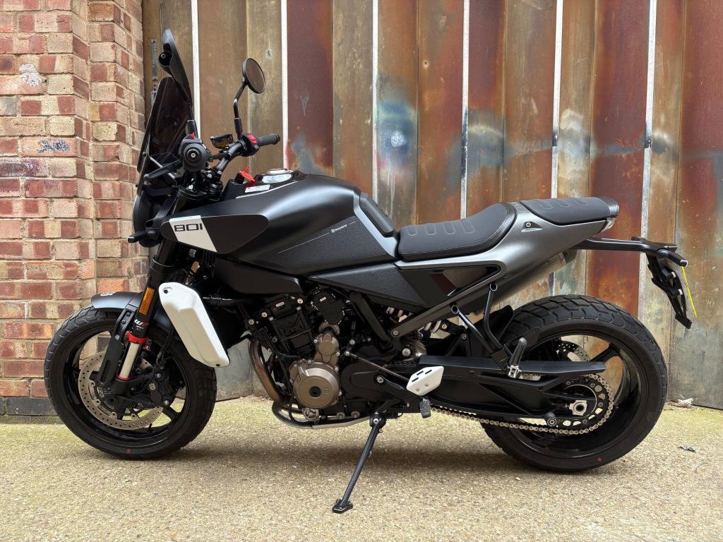 The Husqvarna Svartpilen 801 is a modern-retro scrambler powered by a 799cc parallel-twin engine producing 105 bhp and 87Nm of torque, sharing core components with the KTM 790 Duke. It features a 181kg (dry) dry-weight, 17-inch wheels, and adjustable WP suspension, designed for an agile, street-focused ride.