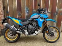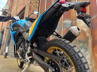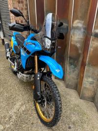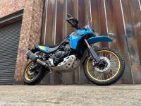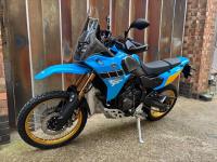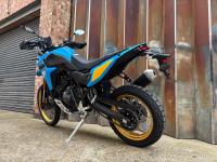 Featuring rally-bred technology including fully adjustable long travel KYB front forks with strengthened tubes, a 4mm aluminium sump guard, lightweight serrated titanium footpegs and slimline bodywork, the Ténéré 700 Rally is one seriously purposeful adventure bike. Distinguishing this Rally version is a unique heritage-inspired colour scheme with gold coloured wheels and Yamaha’s iconic speed block design, topped off with the high level front mudguard synonymous with desert racers.