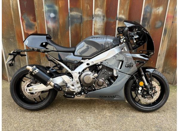 Racer pack includes: Akrapovic exhaust system, dark screen, tail tidy and lower fairings....... Designed to evoke memories of the golden era, the XSR900 GP is the ultimate blend of heritage racing style combined with the latest in cutting-edge technology to offer a thrilling ride to stimulate the senses in a way like no other. With a look reminiscent of the YZR500 ridden to victory by iconic Yamaha racers in the '80s and '90s, the XSR900 GP is a celebration of Yamaha's racing pedigree like nev...