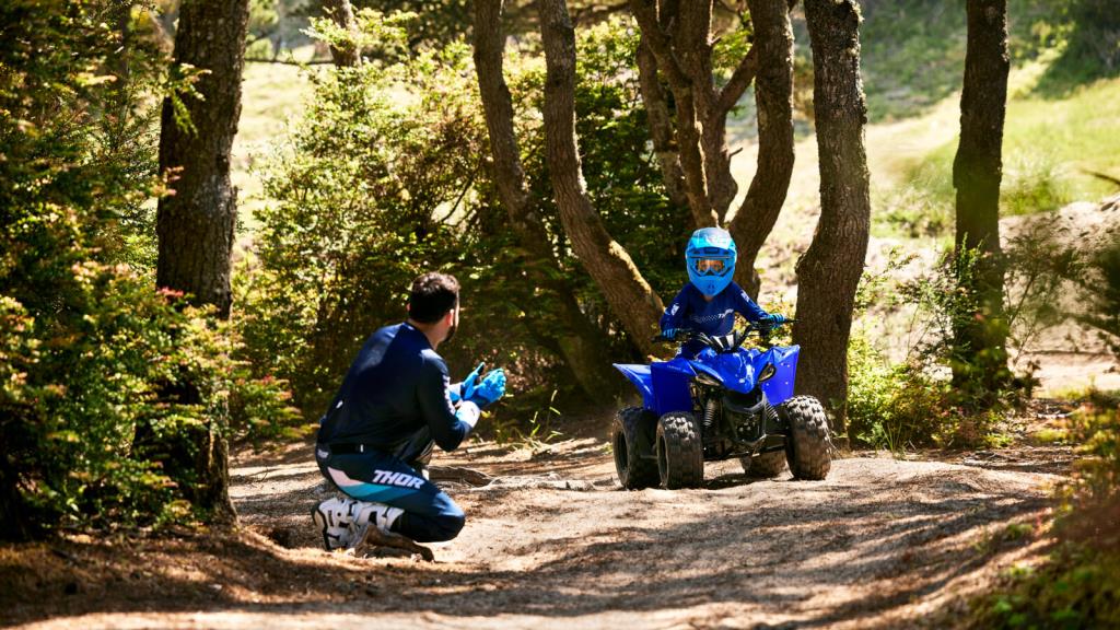 Safety comes first, and the YFZ50 has a range of features that give parents a high degree of control. Speed can be limited by the throttle screw and rev limiter switch – and a lanyard attached to a tether switch can cut the engine instantly.